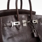 This Hermès 2025 Birkin 25 inspired bag features Havana-brown Niloticus lizard leather, its rich patina complemented by palladium hardware. A modern reinterpretation of exotic creations, it boasts Sellier-inspired lines and hand-finished edges for collectors of forward-thinking luxury replica handbags. Sun-kissed lizard hide and reinforced bases ensure it leads the best high-end dupes of the season.