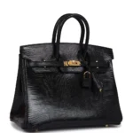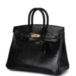 This Hermès Birkin 25 Black Shiny Varanus Lizard replica captivates with obsidian scales, reflecting light like a moonlit abyss. Gold hardware frames the Sellier-stitched edges, while a clochette charm nods to Hermès’ secrecy. A mirror-quality triumph for lovers of luxury replica handbags, it merges reptilian opulence with noir elegance. The glossy hide repels fingerprints, paired with Hermès’ “rigidissimo” structure. A phantom’s companion for midnight métro rides or CEO suites.